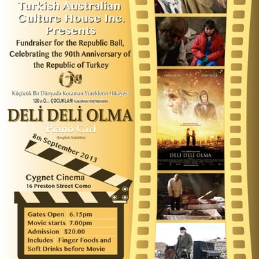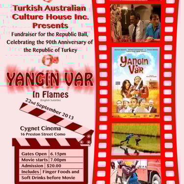 In September 2013, TACH organised the screening of two Turkish films, Deli Deli Olma and Yangin Var at the Cygnet Cinema in Como, Western Australia. Guests enjoyed finger foods before the movie in the lobby of the historic cinema.
