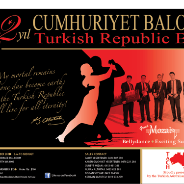 The Turkish Australian Culture House was proud to present the fourth biennial Republic Day Gala Ball on the 31st of October 2015 at Hyatt Regency Hotel “Terrace Ballroom”, celebrating the birth of the Turkish Republic. This year, we were also celebrating the “Year of Turkey in Australia” in 2015.